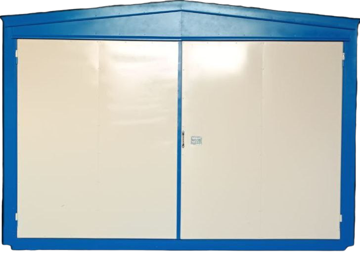 - Стенки наружного контейнера котла выполняются из сэндвич-панелей толщиной от 50 до 100 мм., в зависимости от климатической зоны. Для обслуживания котла передняя и задняя панели выполнены открывающимися, с двухстворными дверями.
